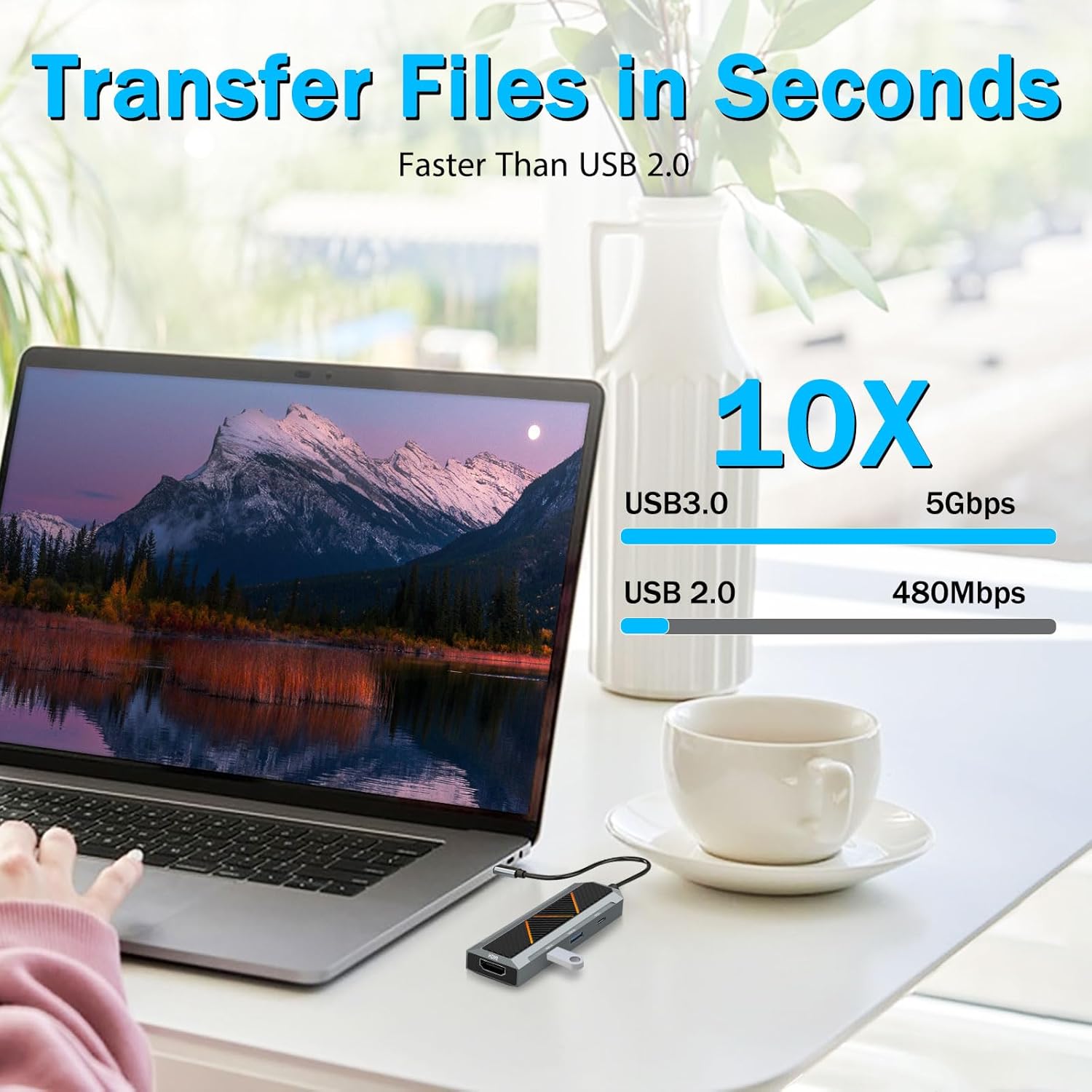 Með stuðningi fyrir 4K skjáúttak og háhraða gagnaflutning, 4-í-1 USB-C Hub með 4K 60Hz HDMI skerandi hjálpar notendum að opna alla möguleika tækja sinna en viðhalda straumlínulaguðu og skipulögðu vinnusvæði.