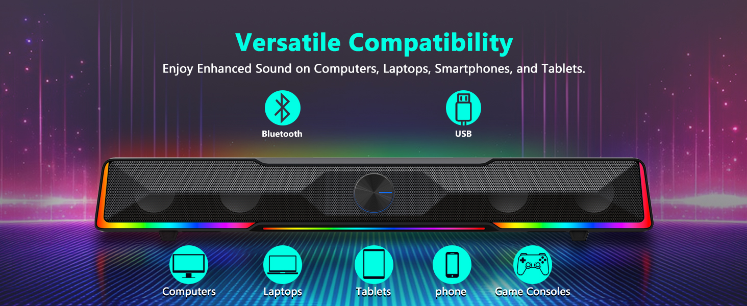 Svarti GS516 Bluetooth/USB þráðlausa tengingin hljóðstiku hljóðstöng tölvuhátalara styður mörg nútíma tæki, sem gerir hann að fjölhæfri skrifborðs hljóðlausn.