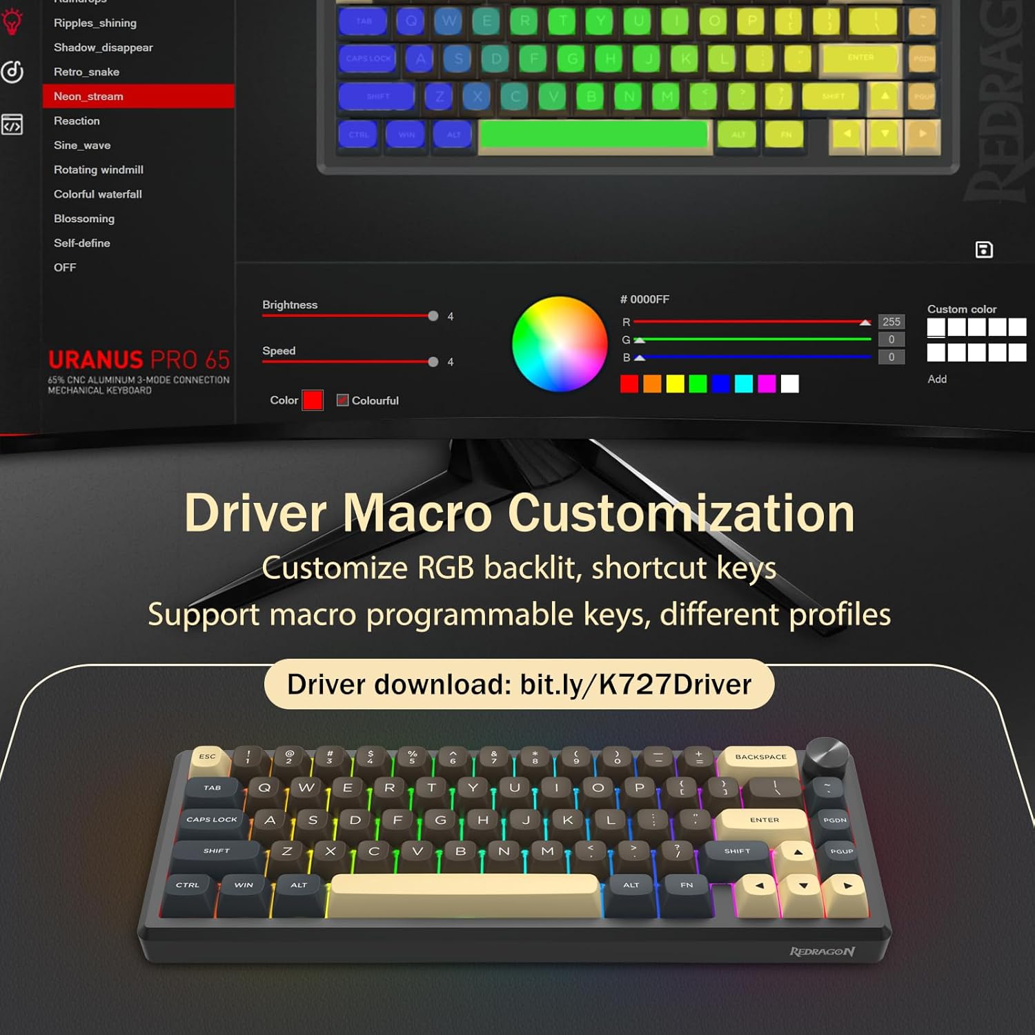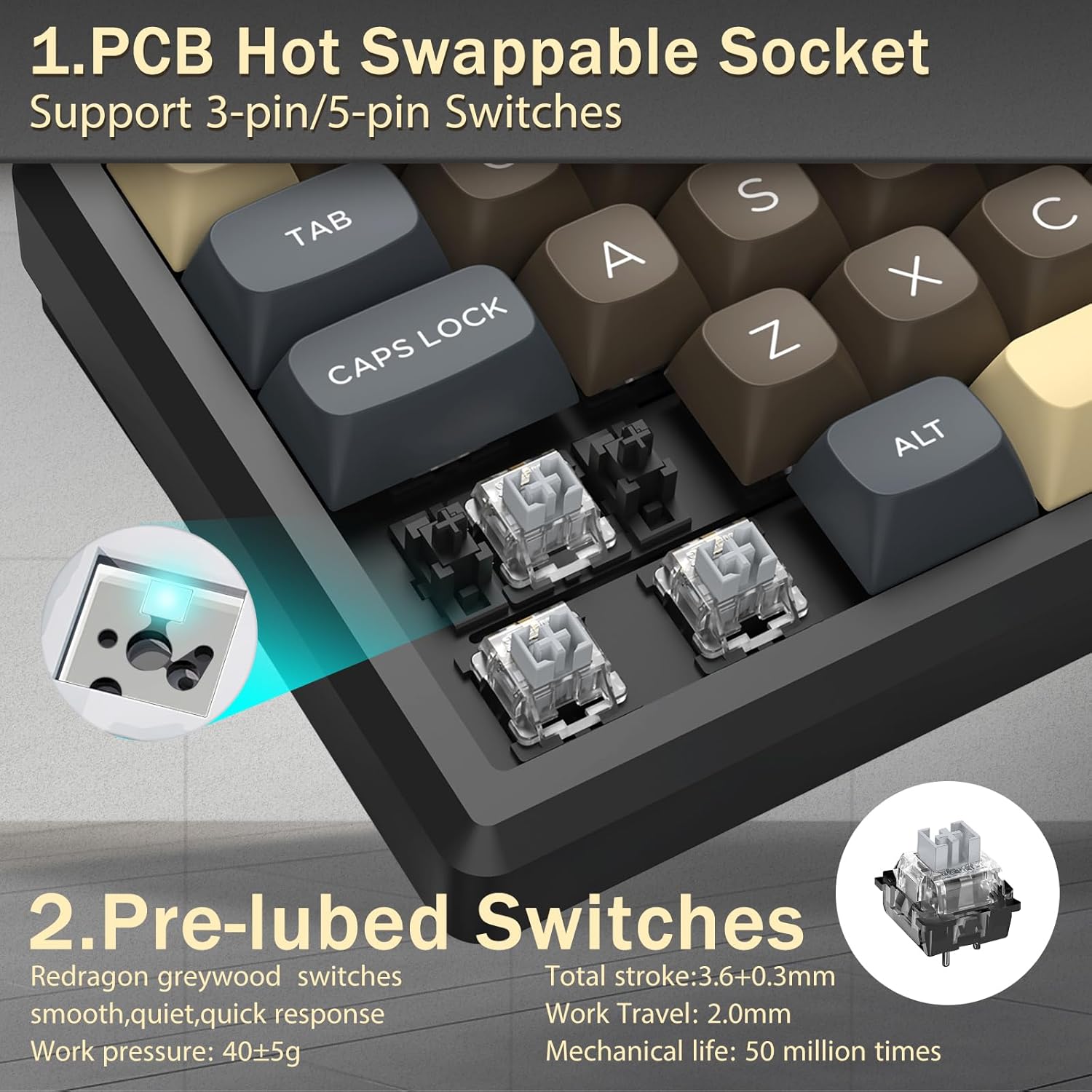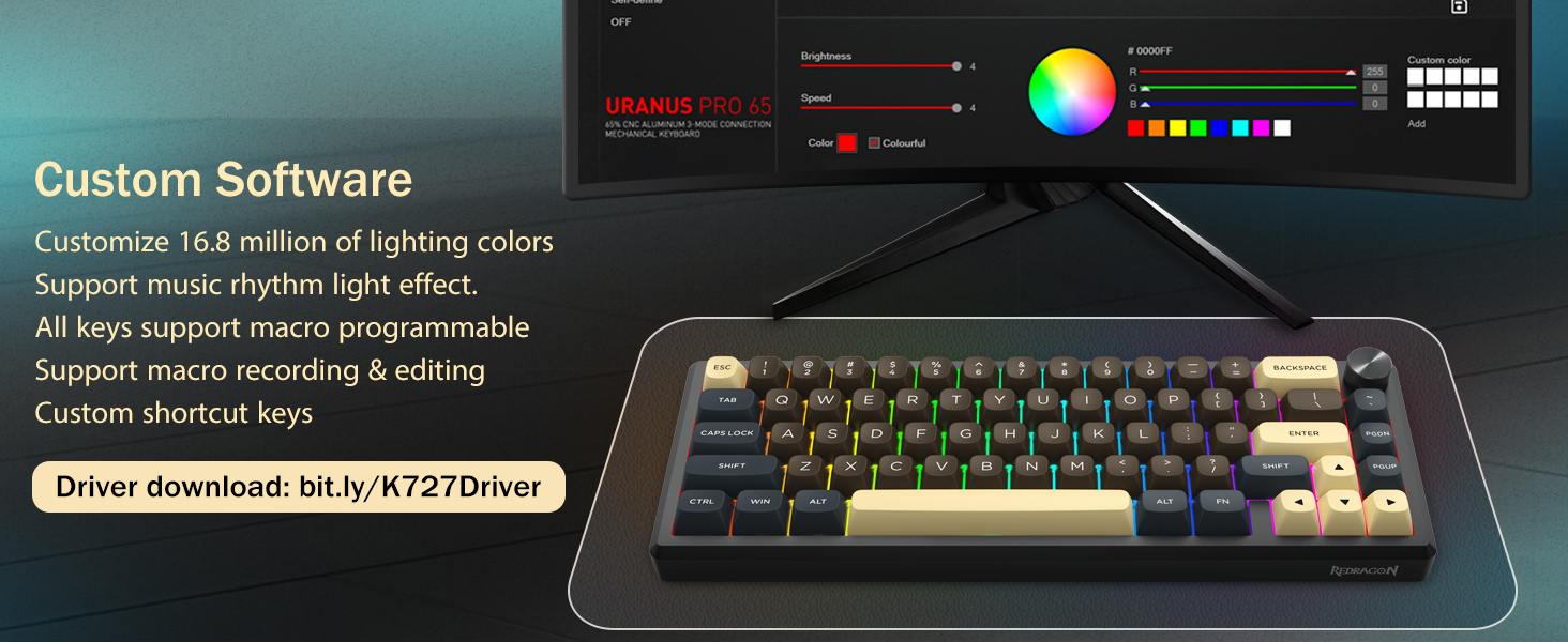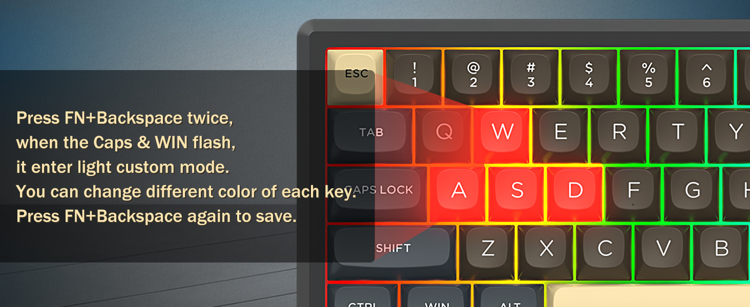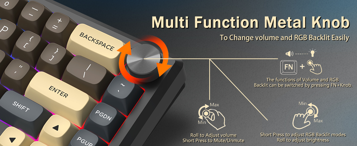 Með 60% uppsetningu, fjarlægir þetta lyklaborð ónauðsynlega lykla á meðan það heldur kjarnavirkni með takkasamsetningum. Þessi hönnun hjálpar til við að draga úr ringulreið á skrifborðinu og veitir meira pláss fyrir músarhreyfingar, sem gerir það hentugt fyrir bæði leikja- og framleiðniumhverfi.