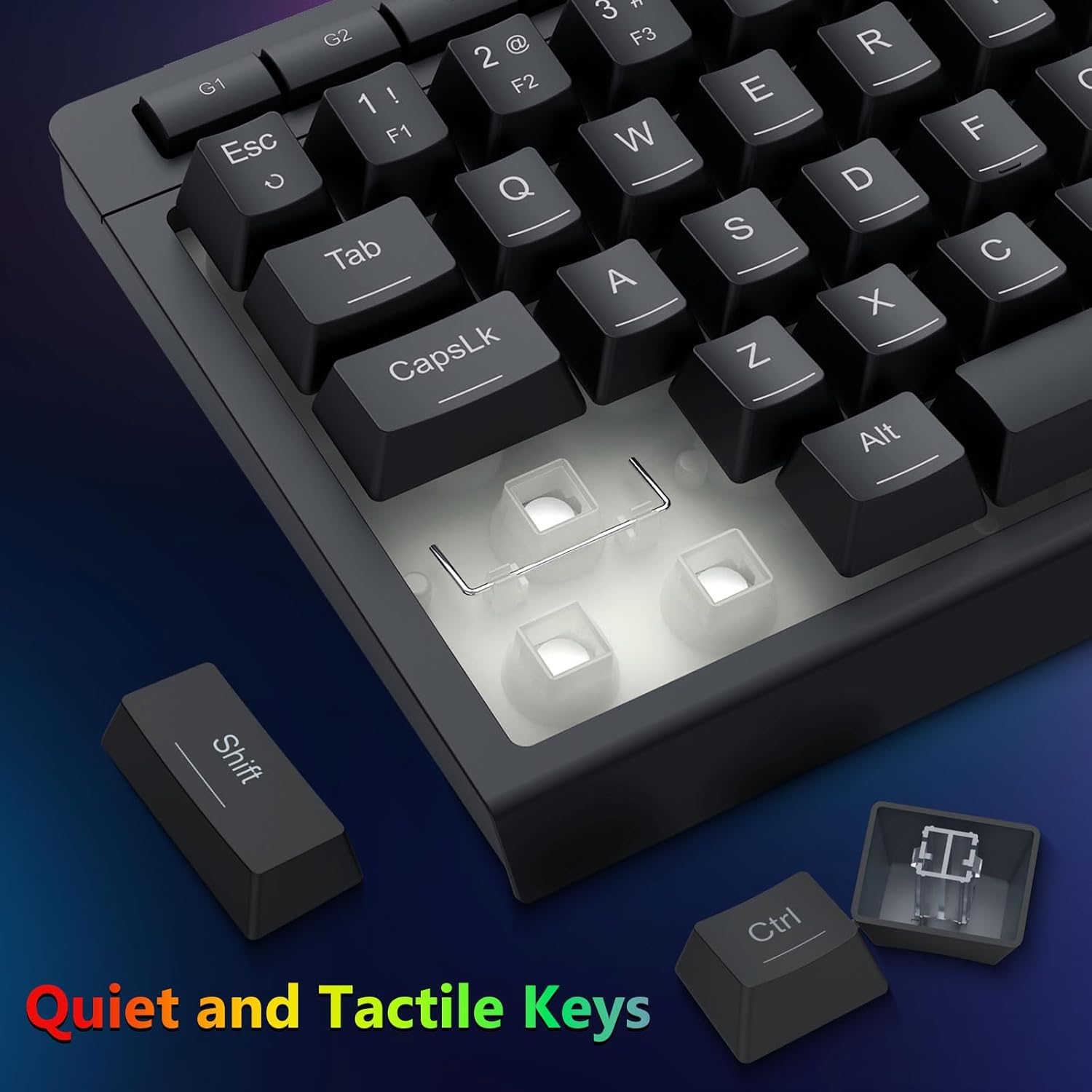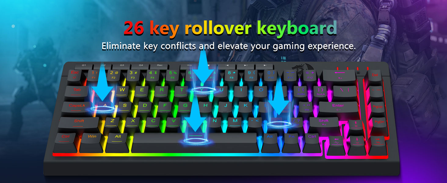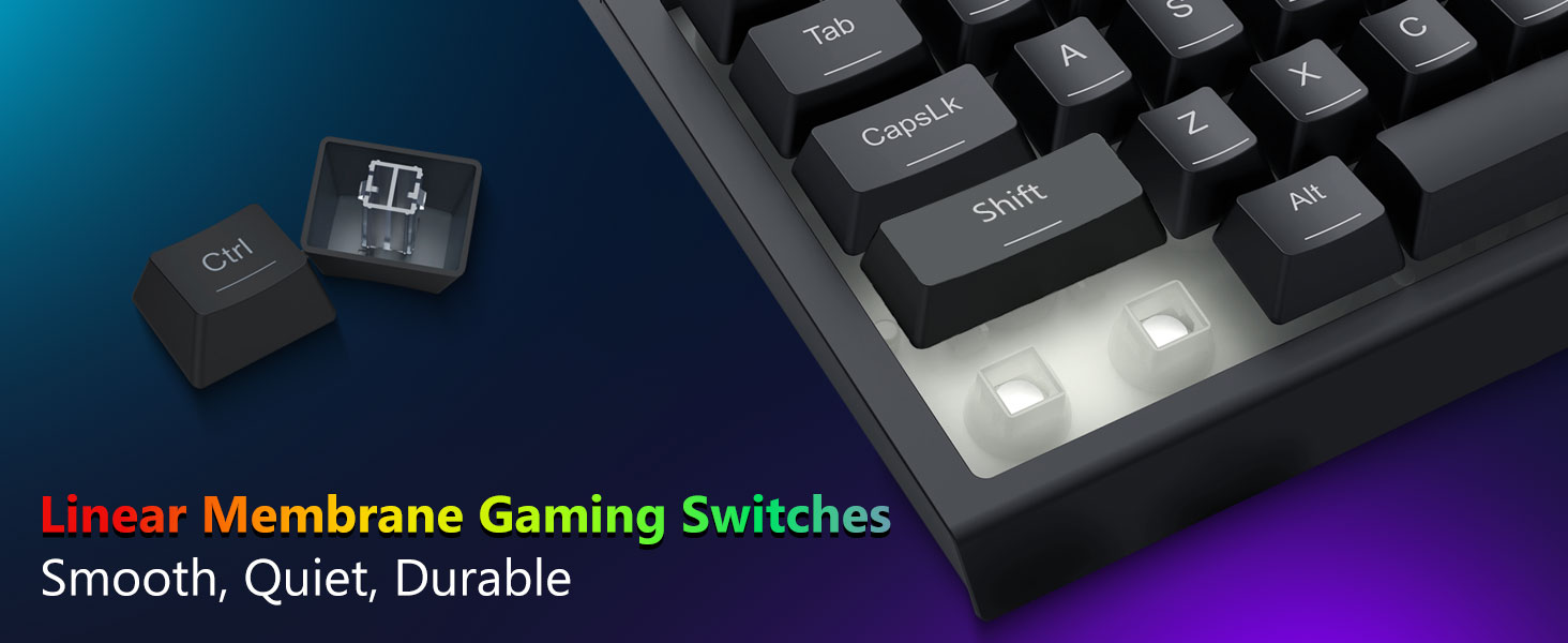 Lyklarnir eru hannaðir til að veita stöðuga endurgjöf og jafna virkjun. Þetta tryggir nákvæma innslátt og áreiðanlegt inntak við leik eða skrifstofunotkun.