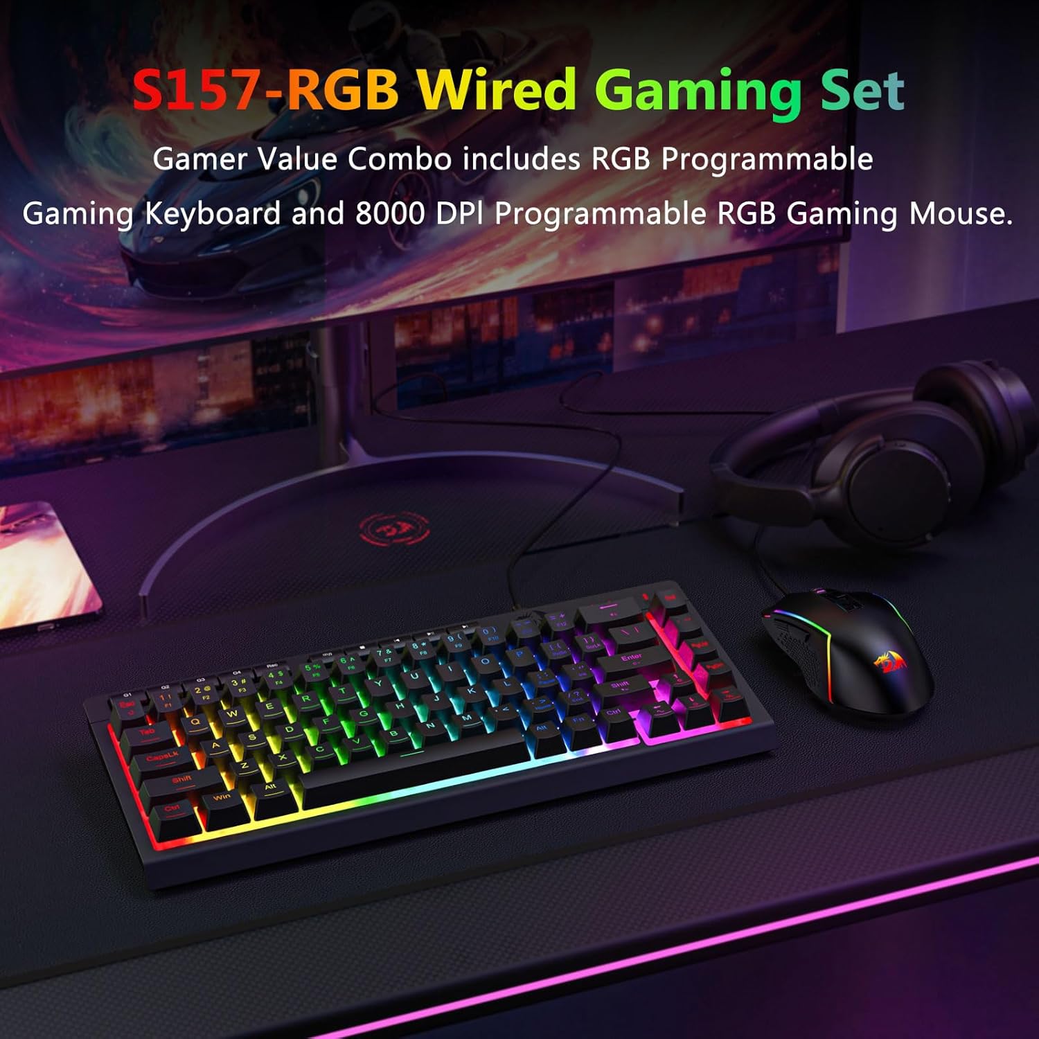 Áreiðanlegt lyklaborð og músaruppsetning er nauðsynleg fyrir bæði leikjaafköst og daglega framleiðni. Svarta S157 RGB baklýst þráðlausa leikjalyklaborðið og músarsamsettið er hannað til að veita stöðugt inntak, hagnýta virkni og hreint skjáborðsútlit. Með því að sameina lyklaborð í fullri stærð og móttækilegri sjónmús, styður þetta sett fjölbreytt úrval af forritum, allt frá leikjatímum til skrifstofuverkefna.