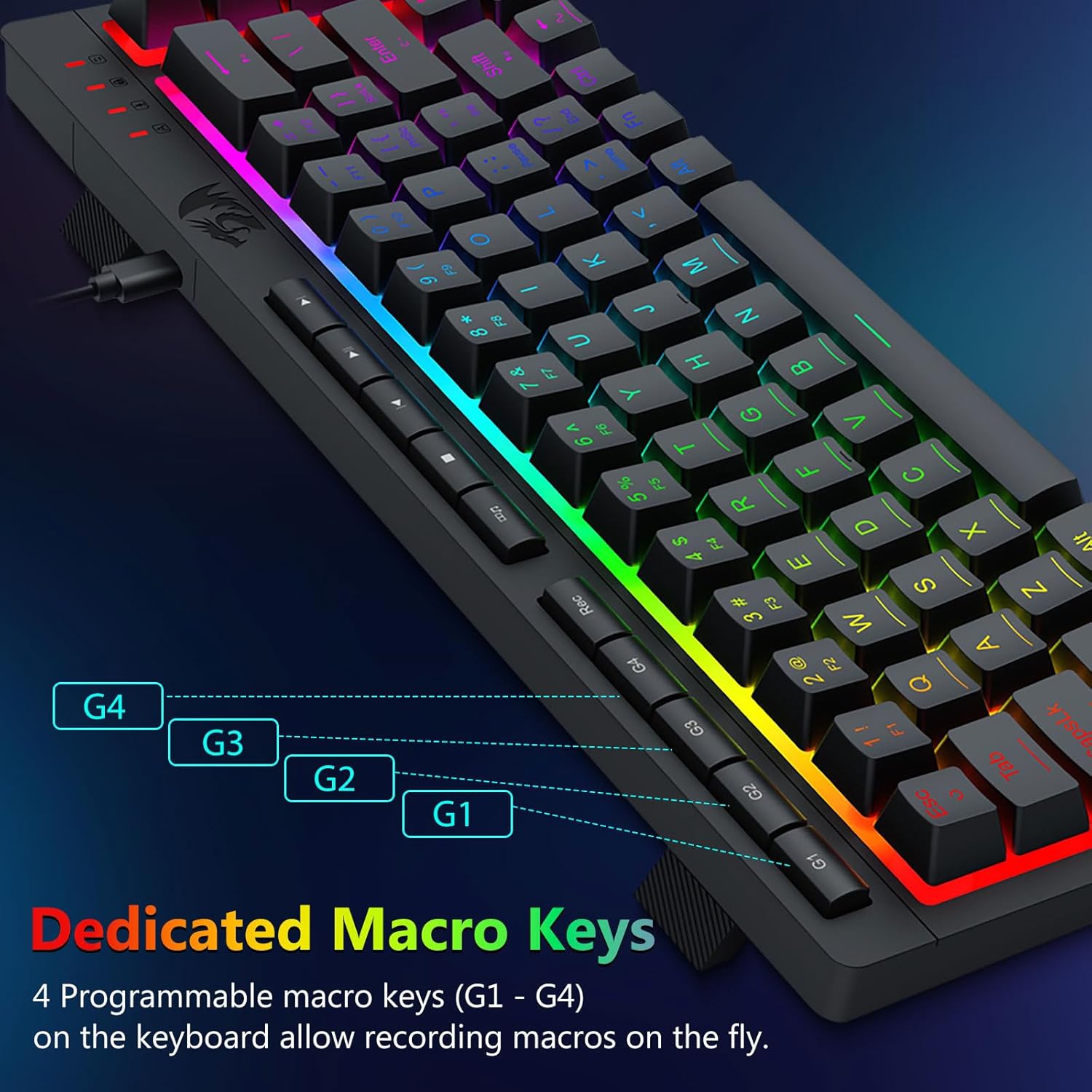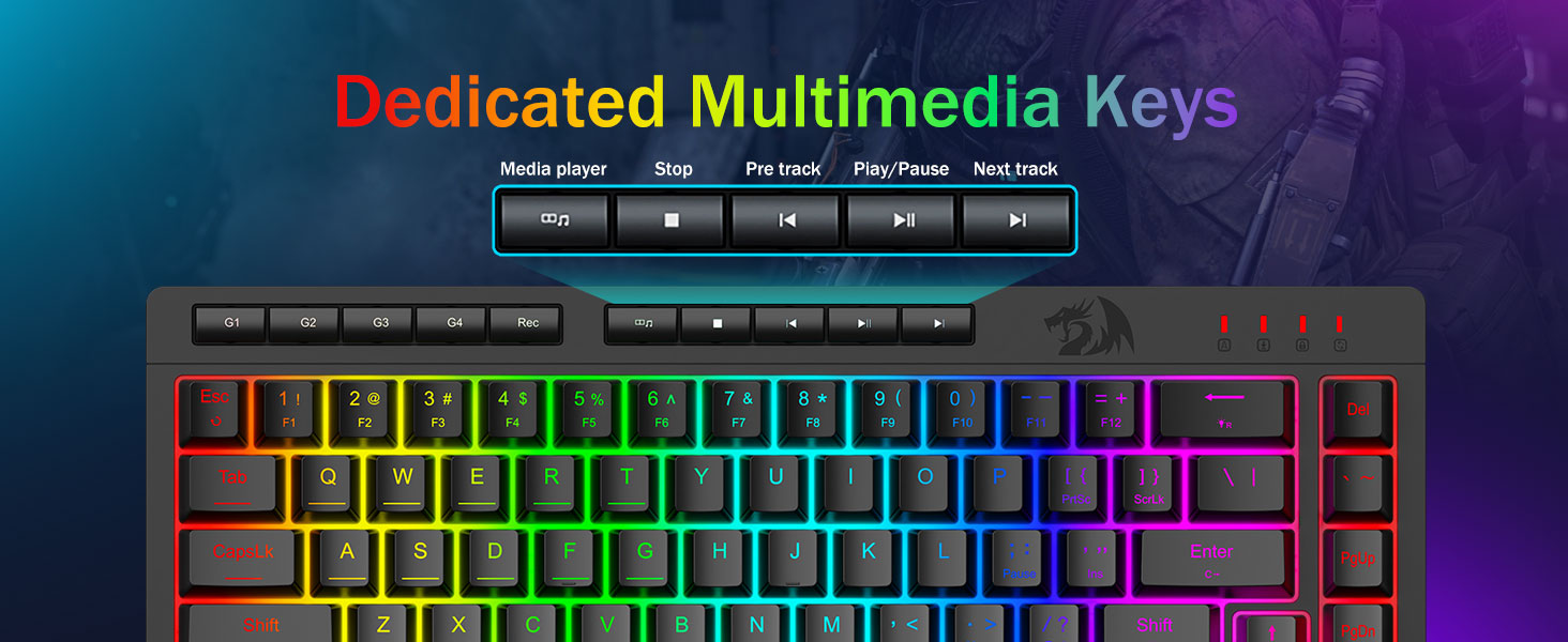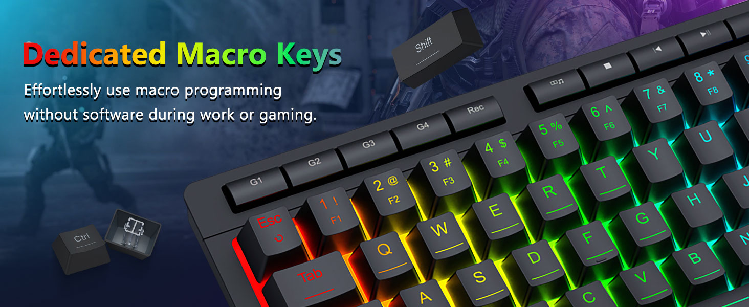 RGB lýsingin eykur notagildi í lítilli birtu, sem gerir notendum kleift að finna lykla auðveldlega án þess að hafa áhrif á einbeitingu.