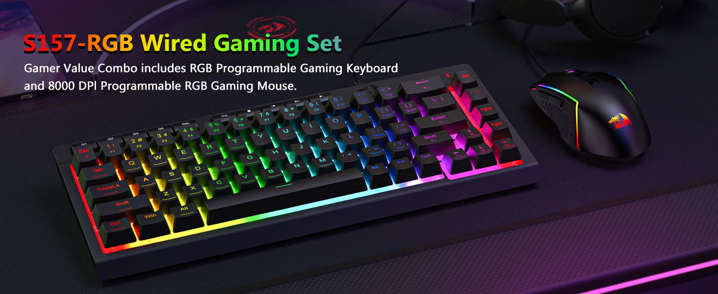 Svart S157 RGB baklýst leikjalyklaborð og mús með snúru