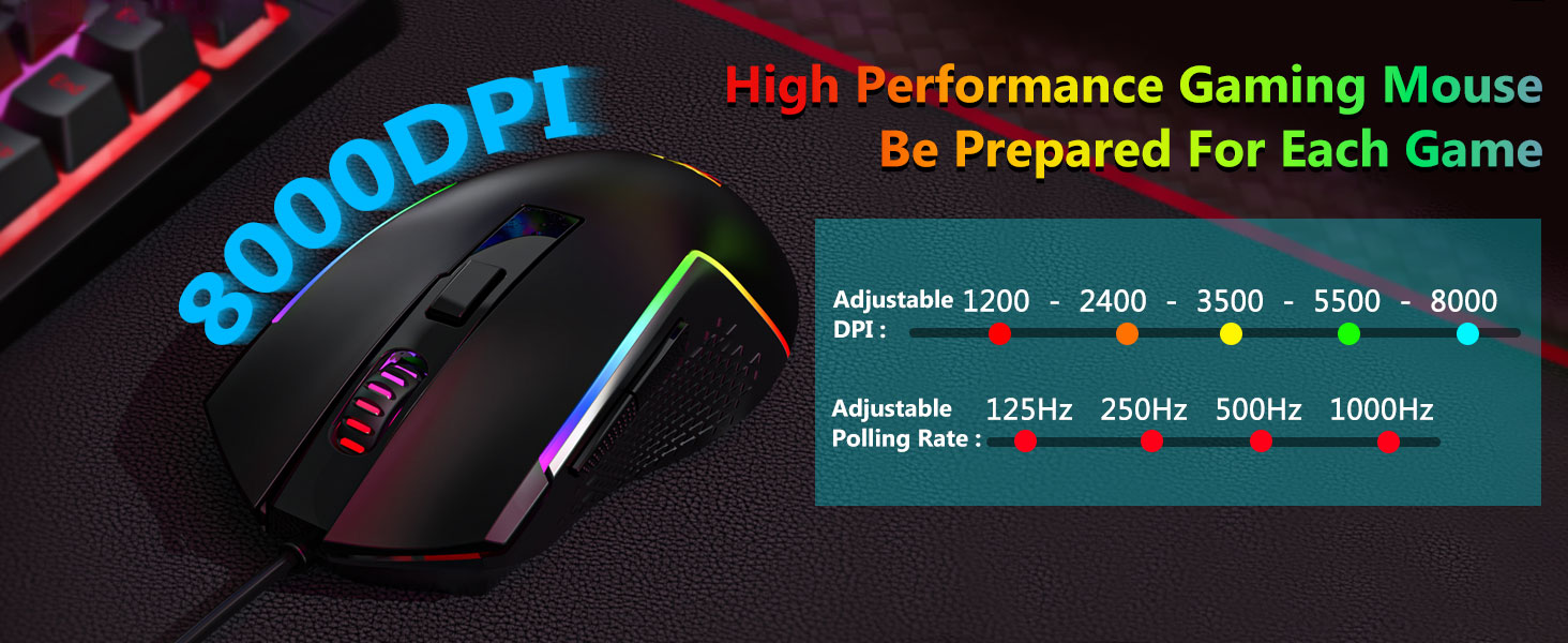 Meðfylgjandi mús er búin sjónskynjara sem styður stöðuga mælingu og mjúka hreyfingu bendils. Stillanlegar DPI stillingar gera notendum kleift að passa næmni við mismunandi verkefni.