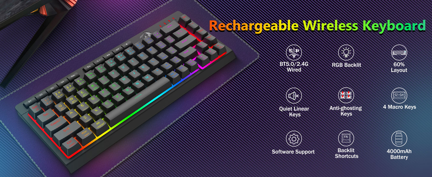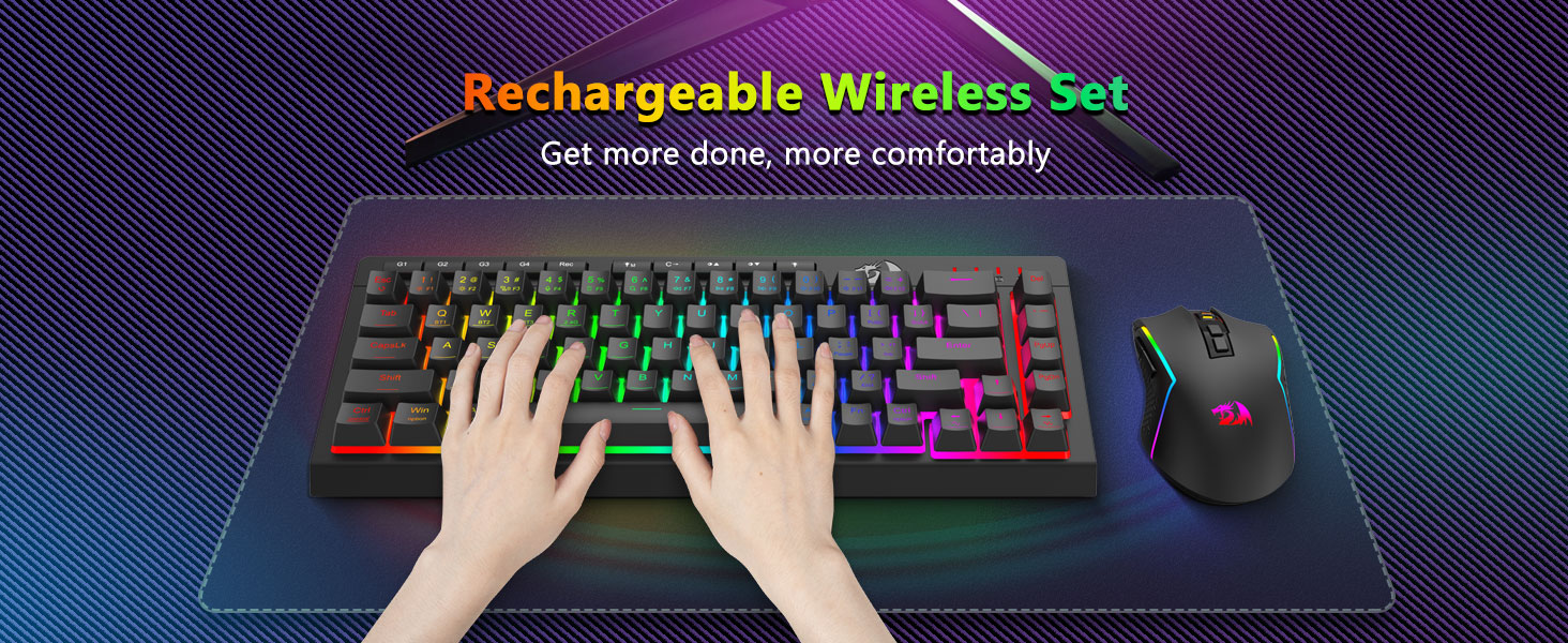 Stígðu inn í heim þráðlauss frelsis og líflegrar lýsingar með Black S157 þráðlausa leikjalyklaborðinu og músarsamsetningunni, framleitt með stolti af Chuangquan fyrir hið þekkta Redragon vörumerki. Þetta samsett er hannað fyrir nútímaleikjaspilara, með móttækilegu vélrænu lyklaborði og mikilli nákvæmni mús, bæði baðuð í kraftmikilli RGB baklýsingu til að skapa yfirgnæfandi vígvallarstemningu. Sem leiðandi birgir og verksmiðja í Kína, tryggir Chuangquan óvenjuleg gæði og samkeppnishæf verð, sem gerir S157 að framúrskarandi vali fyrir heildsöluaðila sem leita að áreiðanlegum, prýddum leikjajaðartækjum.