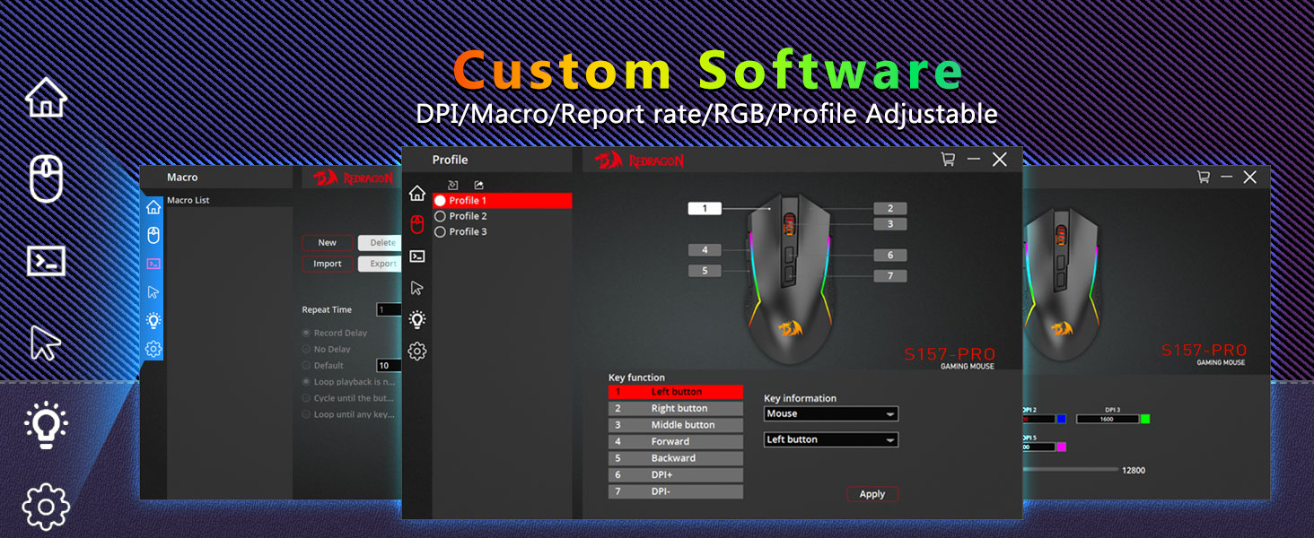 Max 12800 DPI Stillanleg- Búið til 5 innbyggðum DPI stigum sem gera kleift að skrá músarhreyfingar þínar á hvern nákvæman stað. 5 DPI stig eru ókeypis til DIY með hugbúnaði, gera leikurum kleift að skipta hratt í leiknum.