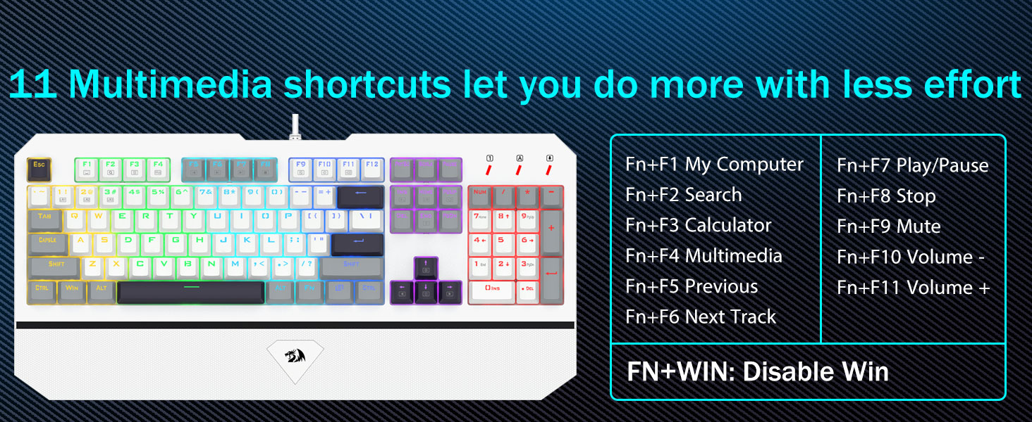 【100% andstæðingur-drauga og 11 margmiðlunarflýtivísar】Njóttu óaðfinnanlegrar innsláttar með 100% andstæðingur - draugatækni, sem gerir öllum lyklum kleift að skrá sig samtímis, sama hversu hratt þú skrifar. Með 11 margmiðlunarlyklaflýtileiðum geturðu fljótt nálgast aðgerðir eins og reiknivél, miðlunarstýringu, hljóðstyrkstillingu. K558 vélræna leikjalyklaborðið, með talnaborði, eykur framleiðni þína. Þetta lyklaborð er samhæft við Windows 7/8/10/XP/VISTA/95/98/2000/ME og Mac OS, Xbox, o.s.frv., en það endist allt að 50 milljónir ásláttar.