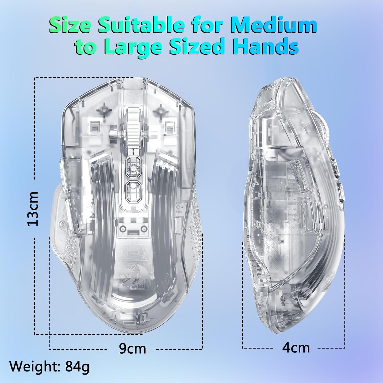 Hvíta M695CT 24.000 DPI 8 RGB LED baklýsingahamur með þráðlausum leikjamús veitir jafnvægi á samsetningu nákvæmni, stöðugleika og notagildis. Afkastamikill skynjari, stillanlegt næmi og vinnuvistfræðileg hönnun gera það að verkum að hann hentar bæði fyrir leik og hversdagsleg verkefni.
