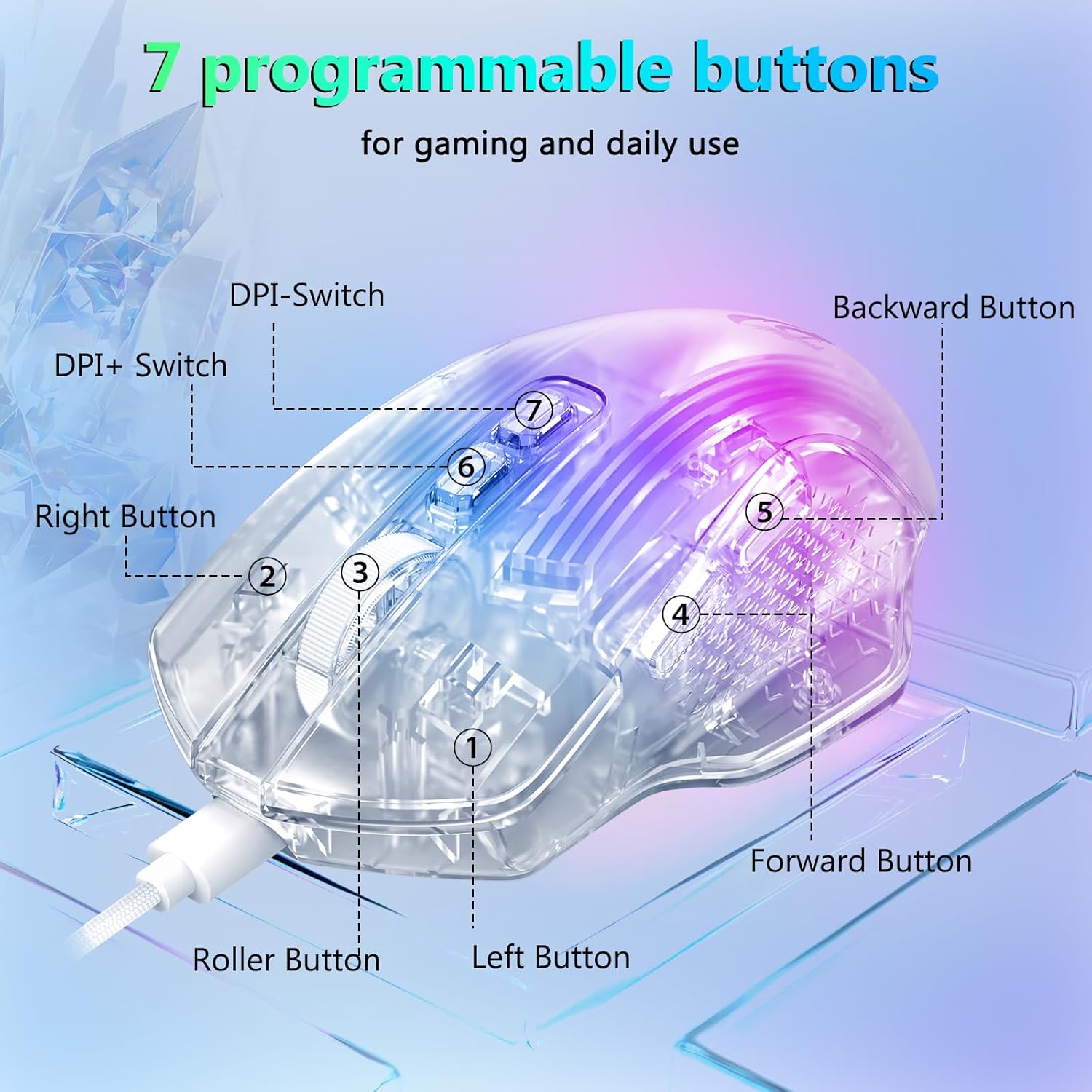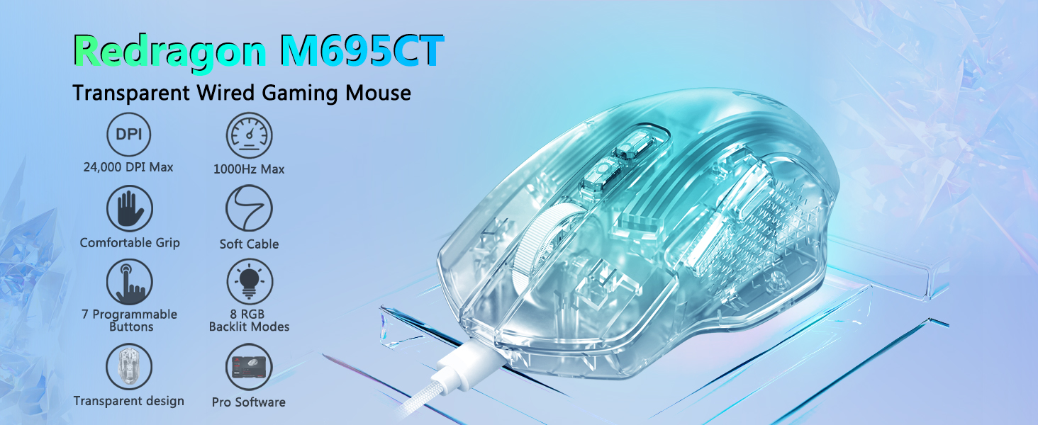 CHUANGQUAN White M695CT 24.000 DPI 8 RGB LED baklýst ham Wired Gaming Mouse skilar ofurnákvæmri mælingu, sléttri stjórn og kraftmikilli lýsingu, byggð fyrir spilara sem krefjast hraða, nákvæmni og stíl.