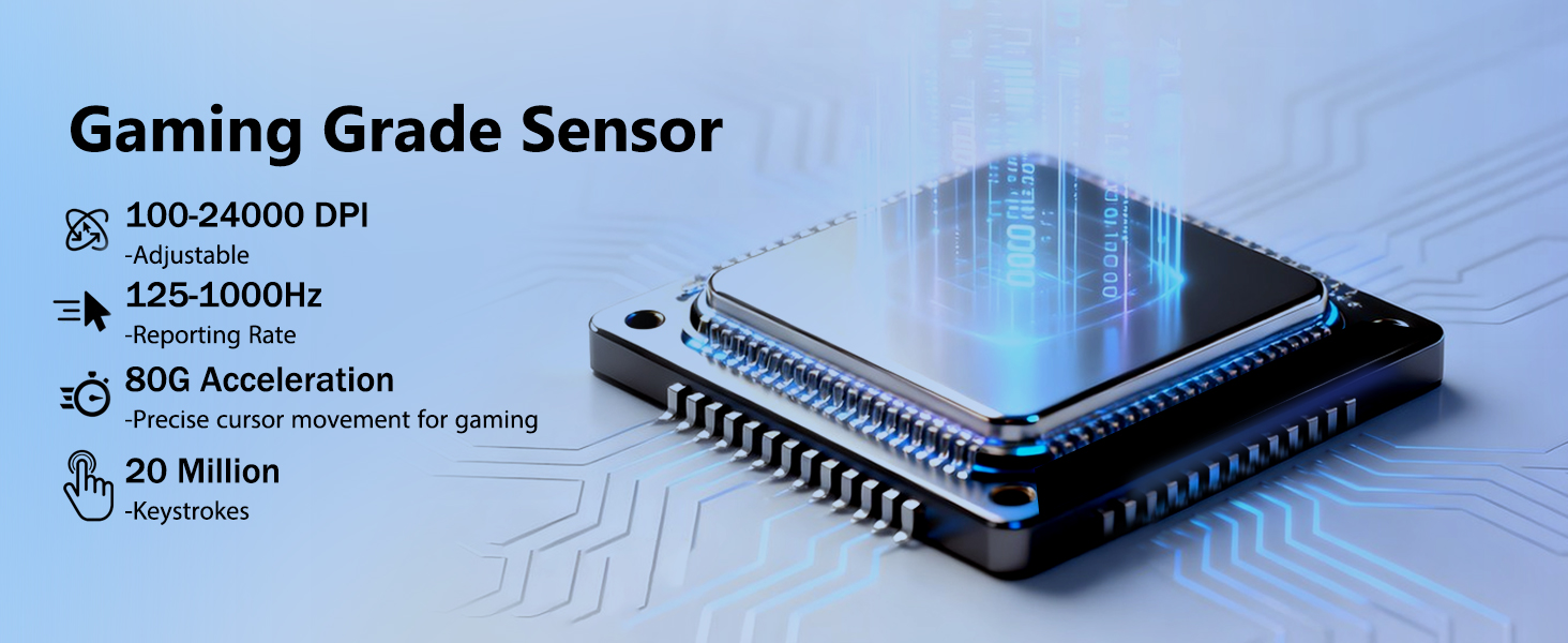 Músin er búin háþróuðum sjónskynjara sem getur náð allt að 24.000 DPI. Þetta gerir notendum kleift að stilla næmni í samræmi við mismunandi aðstæður, allt frá nákvæmri miðun í leikjum til hröðrar hreyfingar bendils yfir stóra skjái.